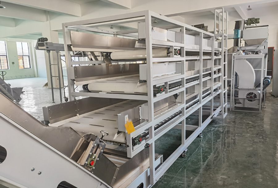 核心優(yōu)點(diǎn):走水均勻,降低茶葉破損率,可增設(shè)空調(diào)通過(guò)改變環(huán)境條件加速回潮,便于下道炒干做型工序加工,整機(jī)回潮時(shí)間40-120分鐘可調(diào),是茶葉連續(xù)化加工的必備工序。