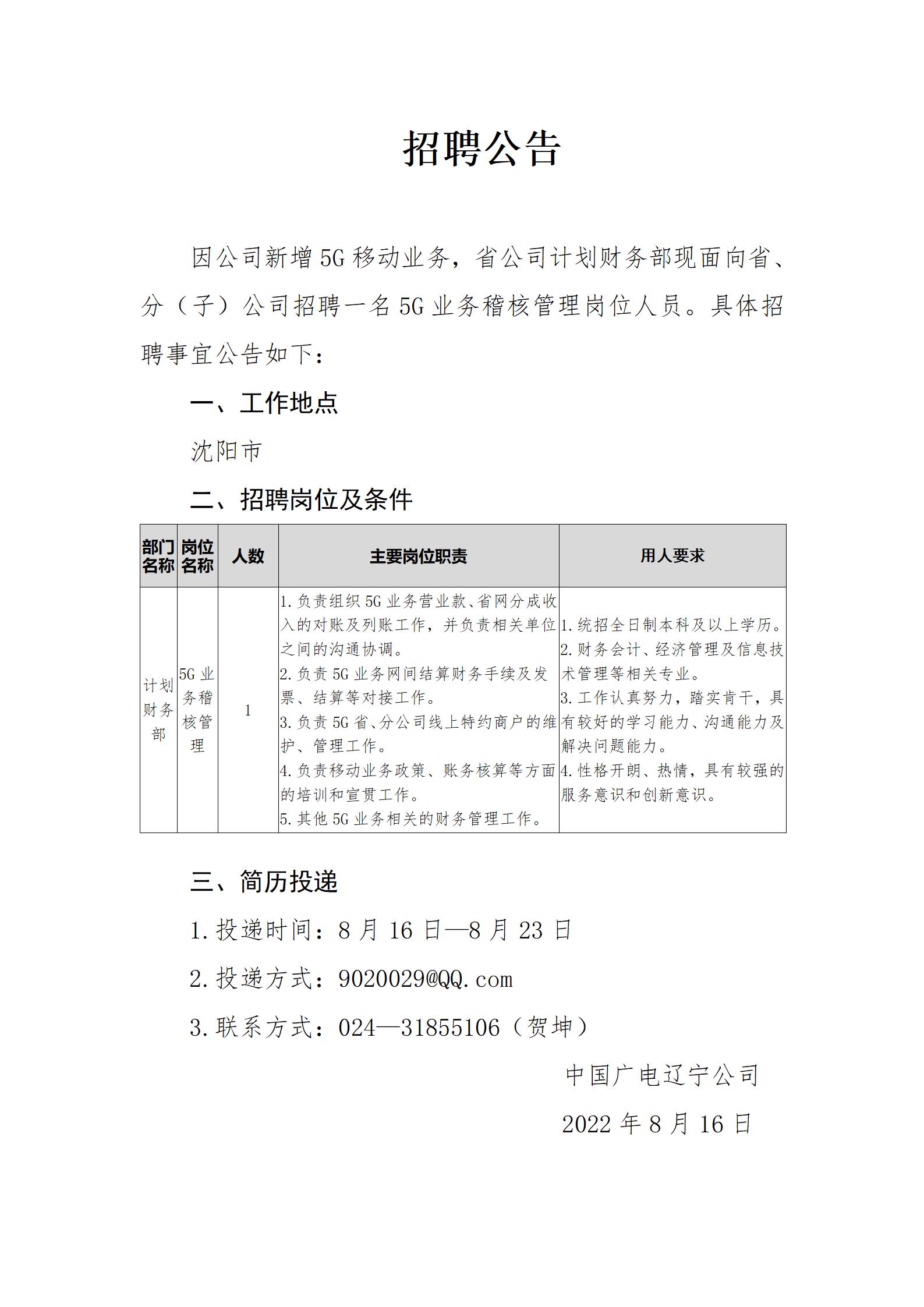 為順應(yīng)5G業(yè)務(wù)發(fā)展需要,加強省公司集團客戶中心(文化大數(shù)據(jù)中心)專業(yè)人才隊伍建設(shè),現(xiàn)面向省、分(子)公司,內(nèi)部招聘三名適合崗位人員,相關(guān)招聘事宜公告如下: